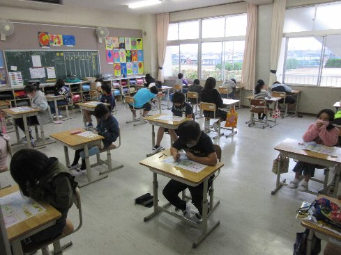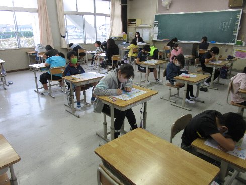 1時間目は国語の授業でした。テストをしました。