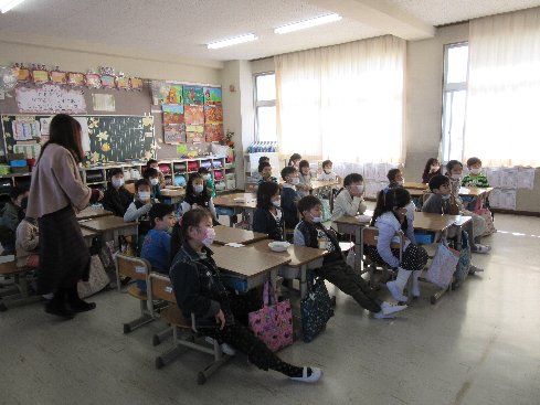 2時間目は初めての英語の授業でした。英語教室でALTの先生と楽しく英語の勉強をしました。