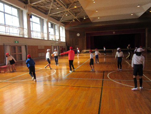 4月17日(火)3時間目は体育の授業でした。大きなかけ声をかけながら、運動場を走りました。その後、2人ペアになって、柔軟体操をしました。