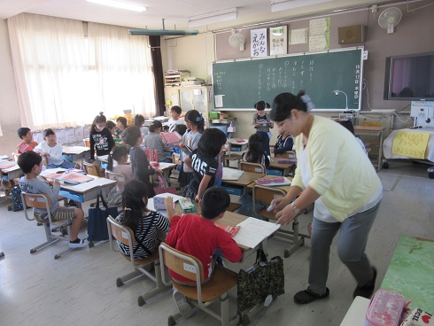 7月19日(木)1時間目は夏休みの宿題を配布しました。一つ一つ、やり方の説明を受けて、確認しながら配布しました。
