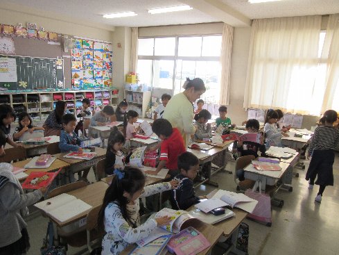 5月29日(火)3時間目は算数の授業でした。問題の答え合わせをしました。早く終わった子は、読書をして待っていました。