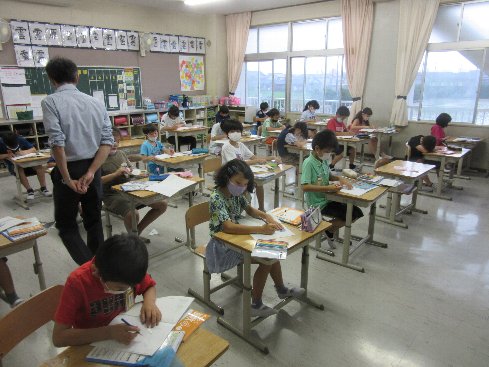 3時間目は算数の授業でした。垂直と平行を使って、方眼紙に模様をかきました。