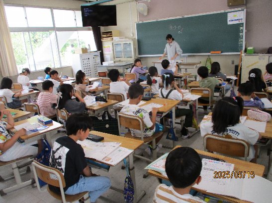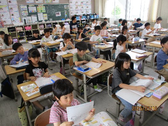 4時間目は算数の授業でした。たし算とひき算のテストを返した後、長さの学習をしました。