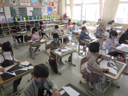 2時間目は生活科の授業授業でした。はさみのアートに取り組みました。