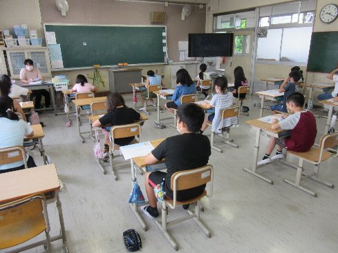 1時間目は算数の授業でした。テストをしました。