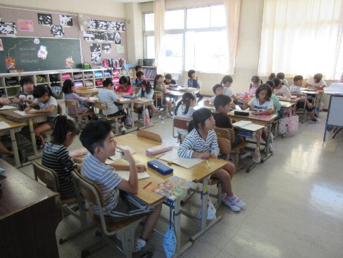 5月30日(水)3時間目は算数の授業でした。章末問題に取り組みました。早くできた子が「小さい先生」になって、理解がまだの子のお手伝いをしていました。