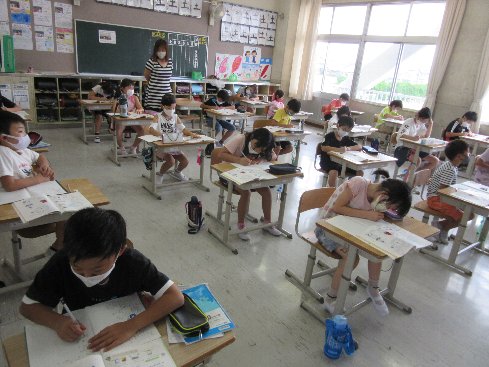 1時間目は算数の授業でした。はかりの使い方の問題練習をしました。