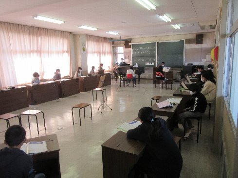 1時間目は音楽の授業でした。星の世界を合唱しました。