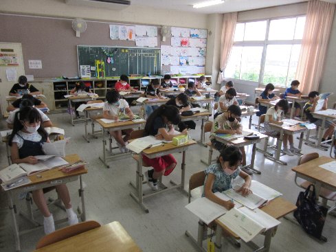 1時間目は国語の授業でした。「カンジー博士の都道府県の旅」で漢字の勉強をしました。