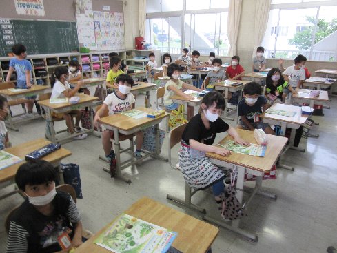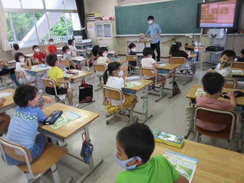 1時間目は生活科の授業でした。「生きものをさがそう」ということで、ワークシートを使って学習しました。