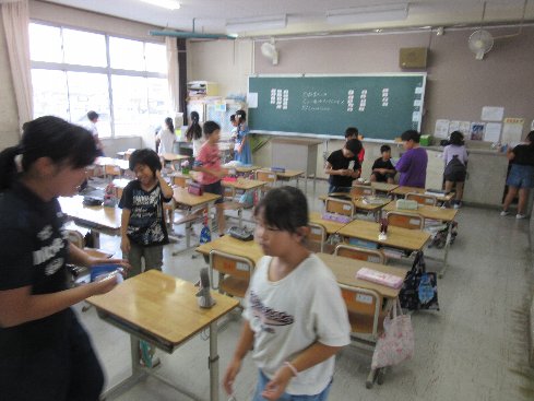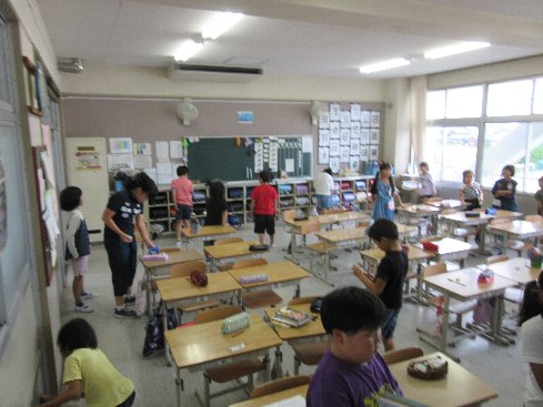 1時間目は体育だったのですが、急な雨でできなくなってしまいました。そこで、教室で宝佐賀市大会を行いました。