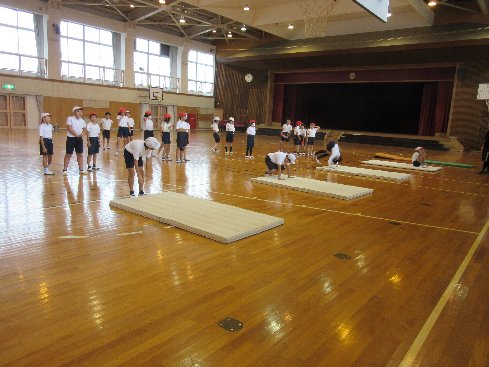 7月6日(金)2時間目は体育の授業でした。体育館でマット運動をしました。