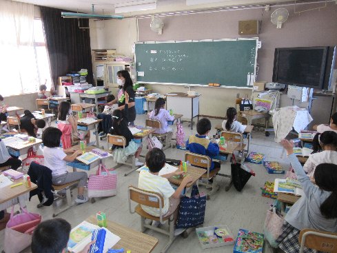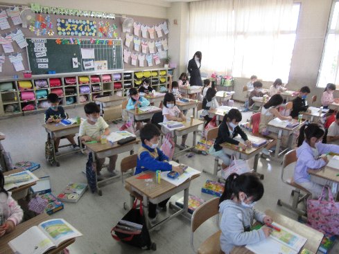 3時間目は算数の授業でした。算数ボックスの並べ棒を使って、図形を作りました。
