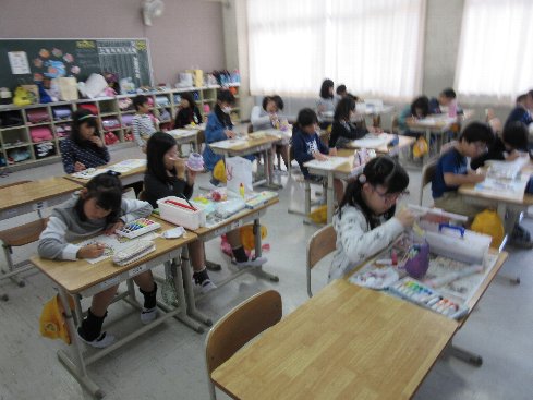 4月16日(月)2時間目は書写の授業でした。初めての毛筆です。硯の使い方から始まって筆のおろし方、片付けのしかたなど、することすべてが初めての経験です。しっかり覚えてスムーズにできるようにしましょう。