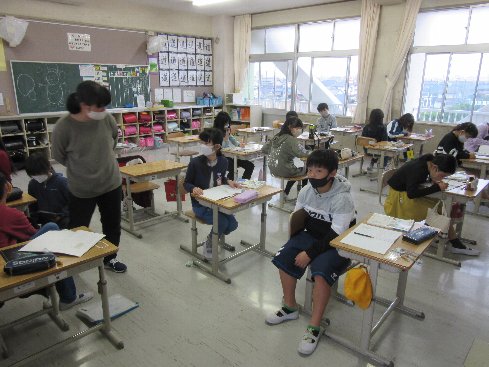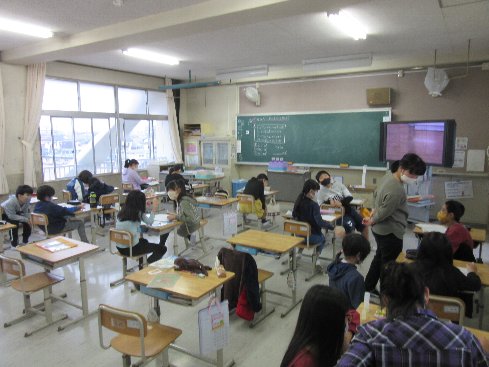 1時間目は算数の授業でした。「ならした1つ分の大きさ」をどうやったら求められるか考えました。
