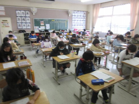 2時間目は社会の授業でした。消防署見学に向けて、学校の消防施設を調べました。
