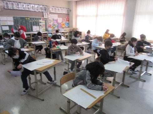 3時間目は算数の授業でした。直方体と立方体について実際に方眼紙で作ってたしかめました。