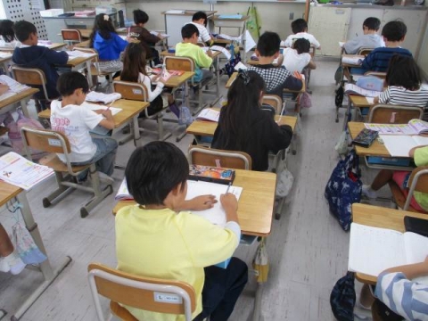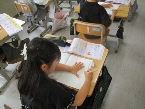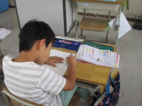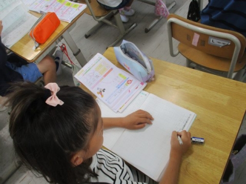 これまでに習った漢字を、一画一画丁寧にノートに書いて復習していました。