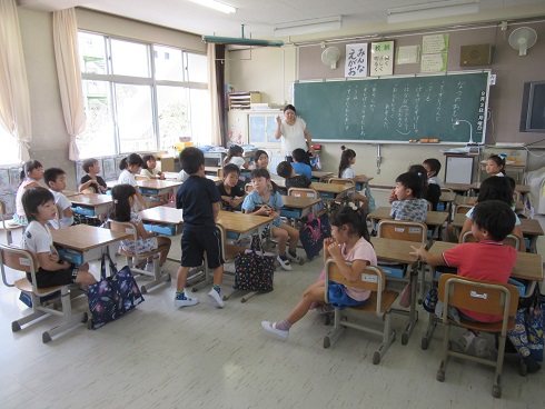 7月19日(木)1時間目は夏休みの宿題を配布しました。一つ一つ、やり方の説明を受けて、確認しながら配布しました。