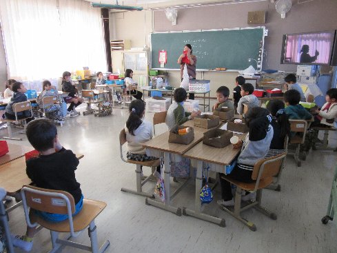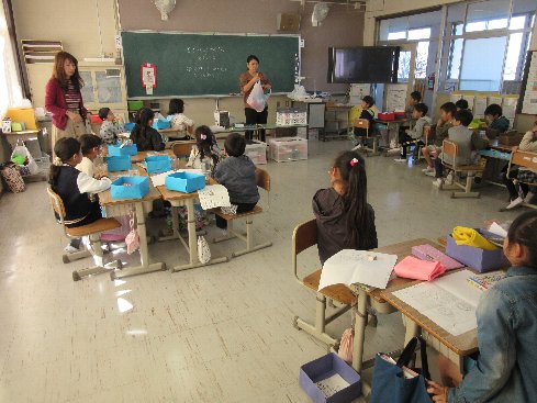 2時間目は初めての英語の授業でした。英語教室でALTの先生と楽しく英語の勉強をしました。