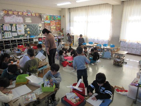 2時間目は生活科の授業でした。あきのおもちゃパーティに向けて、おもちゃ作りに取り組みました。