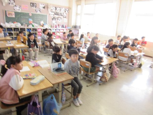 4月20日(金)1時間目の授業は算数でした。「学んだことを生かそう」ということで、早く解けた人が、なかなかわからない子の「小さな先生」になって、全員が○をもらえるように頑張ろうということでした。