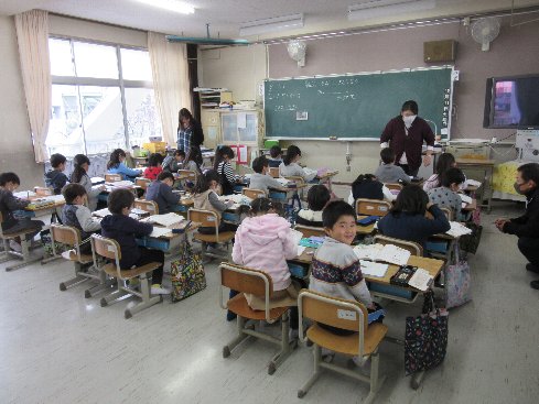 6月5日(火)4時間目は国語の授業でした。ひらがなワークを進めて、できた子から順番に先生に見てもらいました。