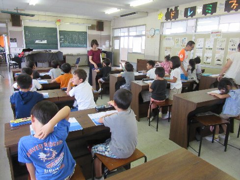 3時間目は音楽の授業でした。「うみ」を歌いました。