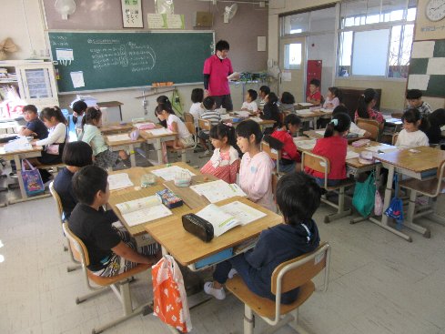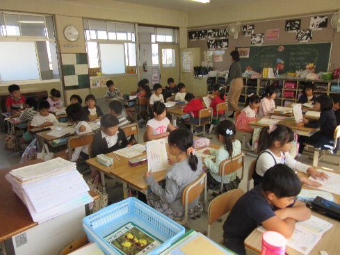 5月30日(水)3時間目は算数の授業でした。章末問題に取り組みました。早くできた子が「小さい先生」になって、理解がまだの子のお手伝いをしていました。