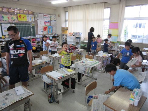 2・3時間目は図画工作の授業でした。初めて水彩絵の具を使って彩色しました。