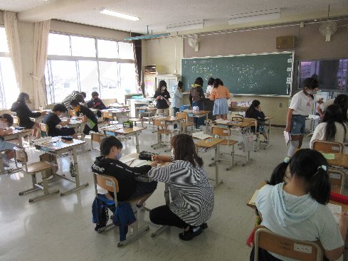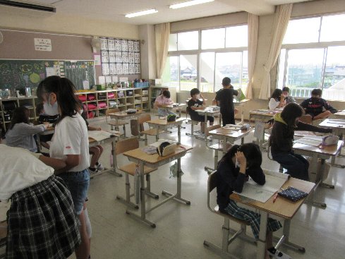 1時間目は算数の授業でした。分数の足し算の練習をしました。