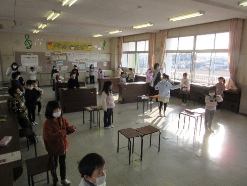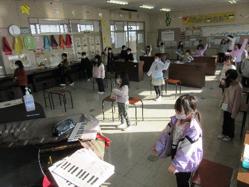 2時間目は音楽の授業でした。「アイアイ」を、踊りもつけて歌いました。