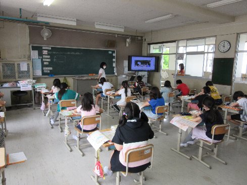 1・2時間目は英語の授業でした。英語で話す映像を見て、話の内容を理解する学習をしました。