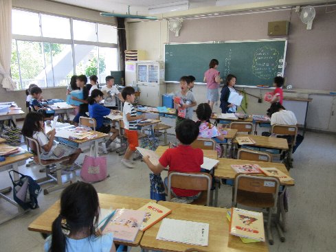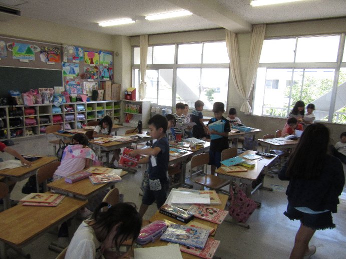 5時間目ははじめに連絡帳を書いて、配布物を配りました。