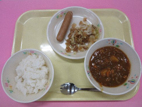 チキンカレー(ご飯)、フランクフルト、福神和え