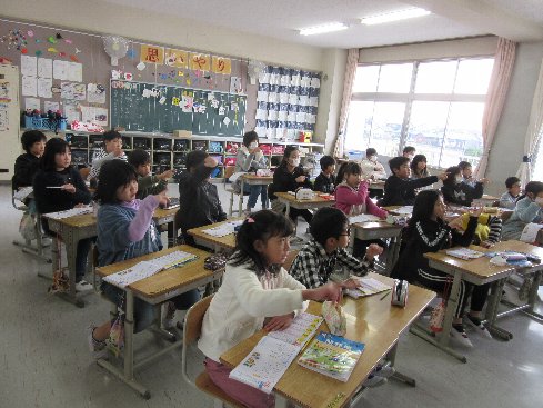 4月11日(水)3時間目は音楽の授業でした。「子どもの世界」を、まずはCDを視聴して。その後みんなで歌いました。