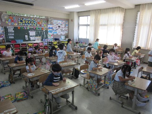 1時間目は算数の授業でした。足し算カードで足し算の練習をしました。