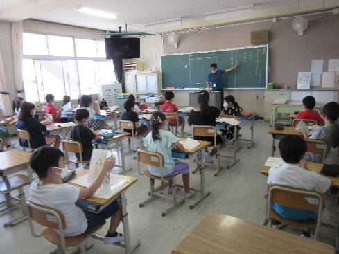 3時間目は国語の授業でした。「お礼の気持ちを伝えよう」ということで、誰に何を伝えるか考えて、書きました。