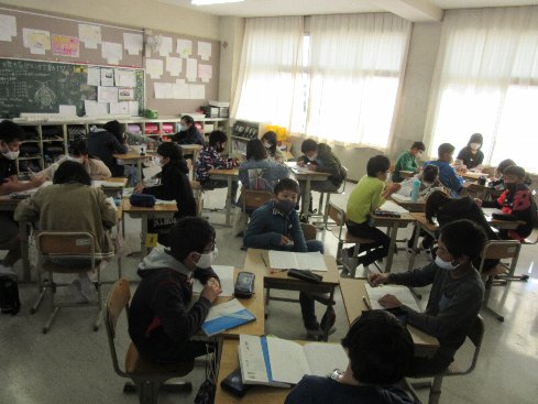 3時間目は国語の授業でした。班ごと、それぞれのテーマに沿って話し合い活動をしました。