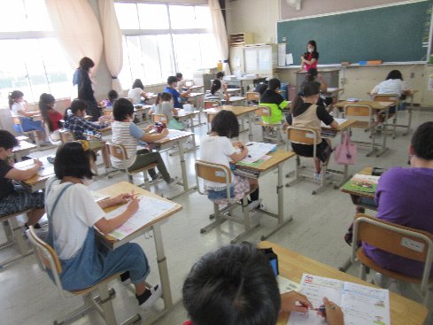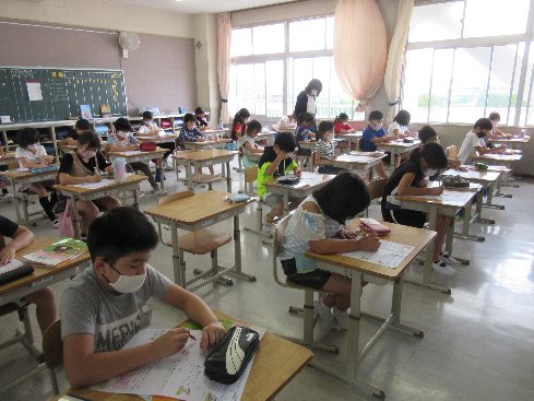 1時間目は算数の授業でした。プリントを使って復習をしました。