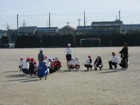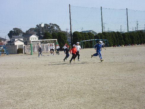 5時間目は体育の授業でした。準備運動の後、4分間走をしてからサッカーの練習をしました。
