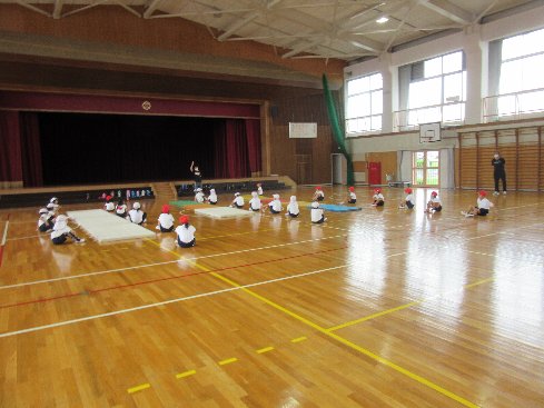 2時間目は体育の授業でした。後ろ回りの練習をしました。