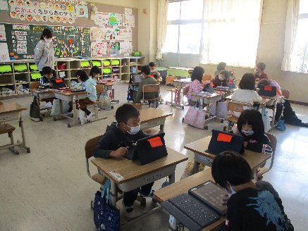 2時間目は国語の授業でした。第5場面での子どもたちやくじらぐもの気持ちを想像し、グループで発表し合いました。