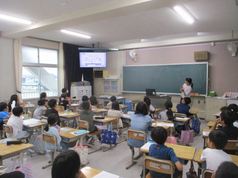 アルファベットソングを歌いながら、外国語に親しんでいました。