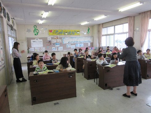 3時間目は音楽の授業でした。「かくれんぼ」を手拍子をしながら歌いました。