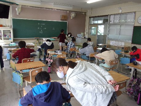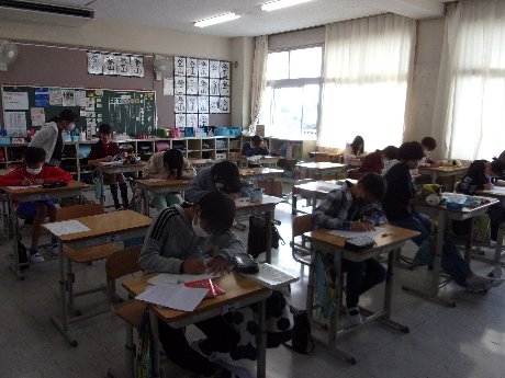 1時間目は国語と社会の復習プリントに取り組みました。