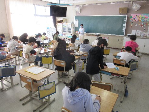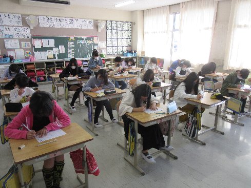 3時間目は国語の授業でした。はじめに漢字の小テストをしました。