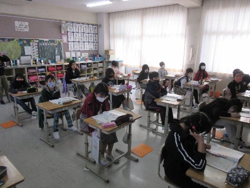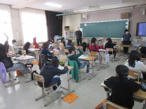 1時間目は英語の授業でした。地図を使って道案内をする方法について考えました。
