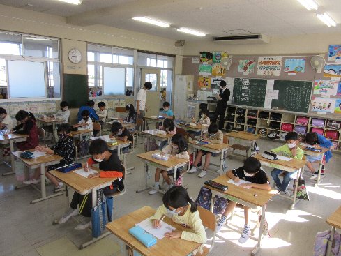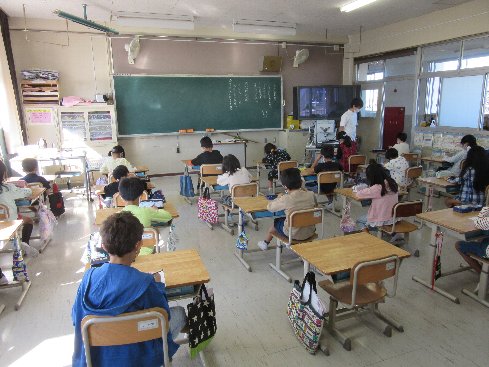 1時間目は道徳の授業でした。「大繩大会」というお話を通して力を合わせることについて考えました。