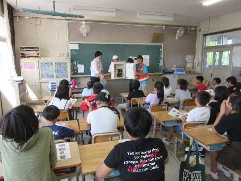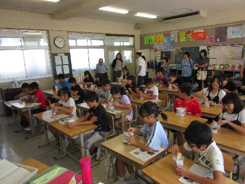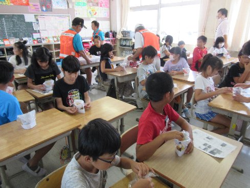 2時間目は防災教室でした。SOSボックスを見せていただいた後、非常食の試食をしました。